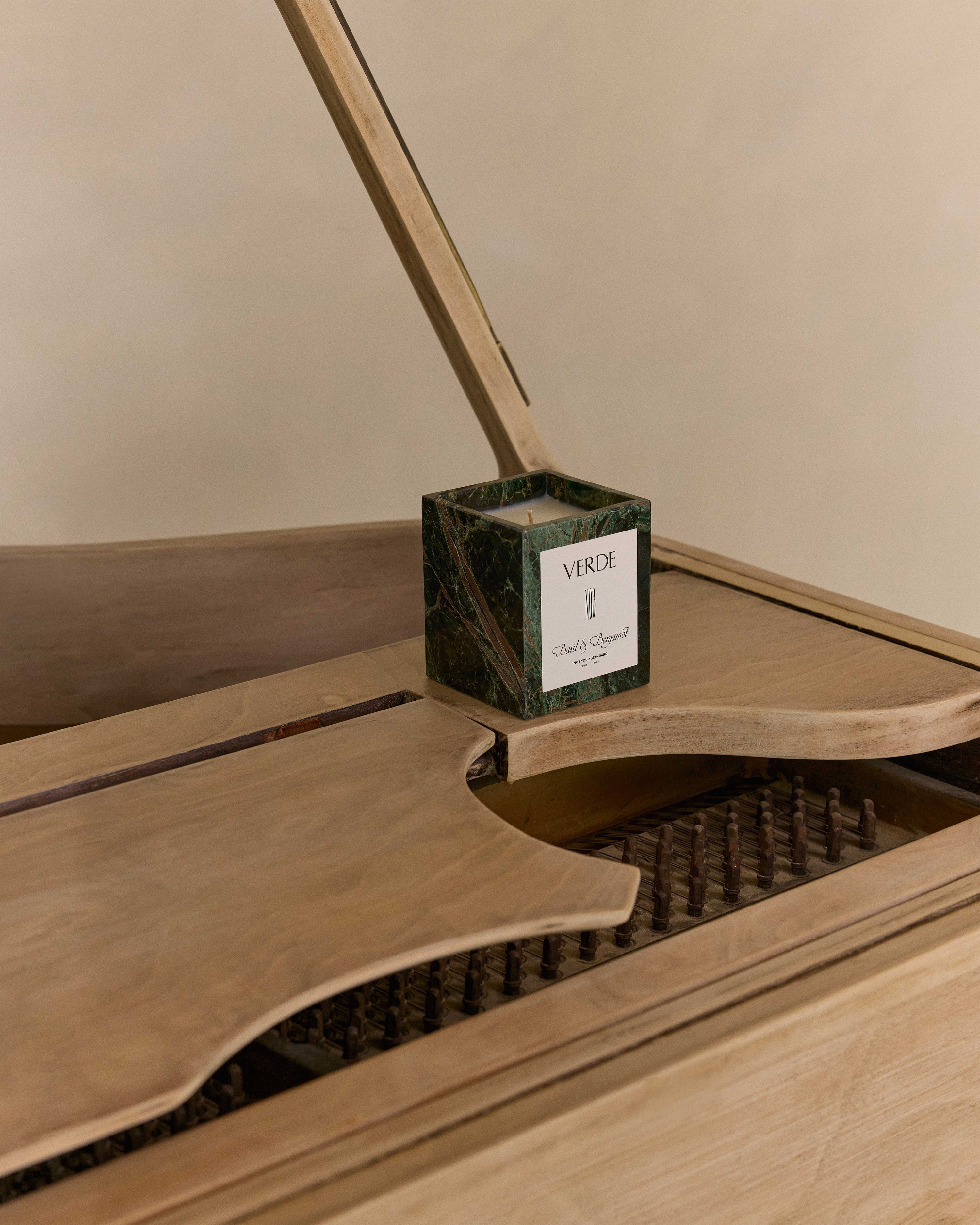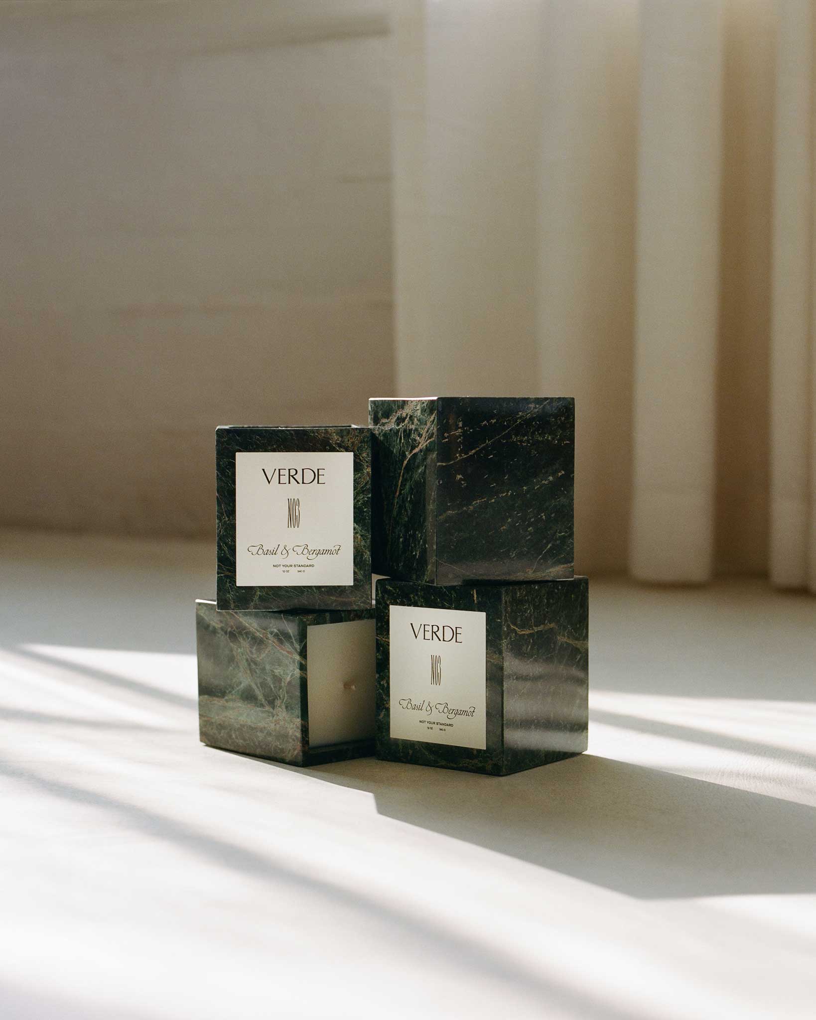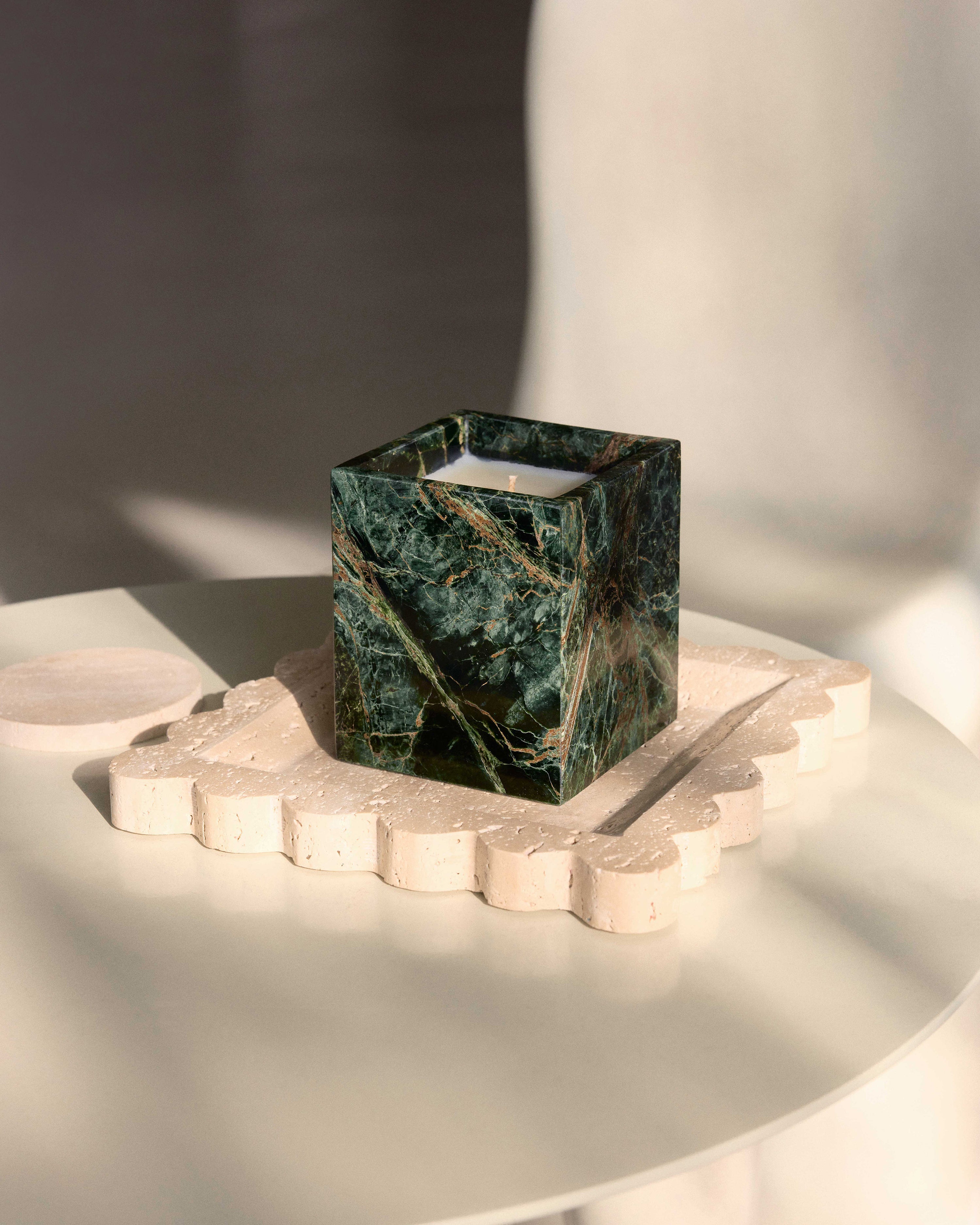 Hand-poured in Los Angeles, the Verde Candle boasts a clean-burning, non-toxic formula designed to bring a touch of luxury to any setting. It features an essential oil blend of basil and bergamot, accented by hints of eucalyptus, lemon, jasmine, and wild cypress, evoking the essence of a garden in full bloom—a perfect blend of elegance and nature. All of this is beautifully encased in a luxurious Emerald marble vessel. As comforting as it is stunning, this candle makes an excellent addition to any coffee table, and its reusable vessel adds to its charm.